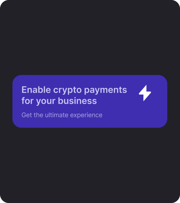 While customers pay in crypto, you receive settlements in your local fiat currency (quickly!). No need to manage crypto conversions yourself, no exposure to volatility.